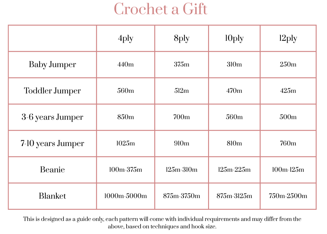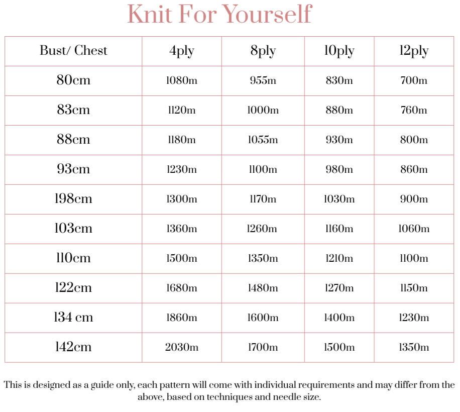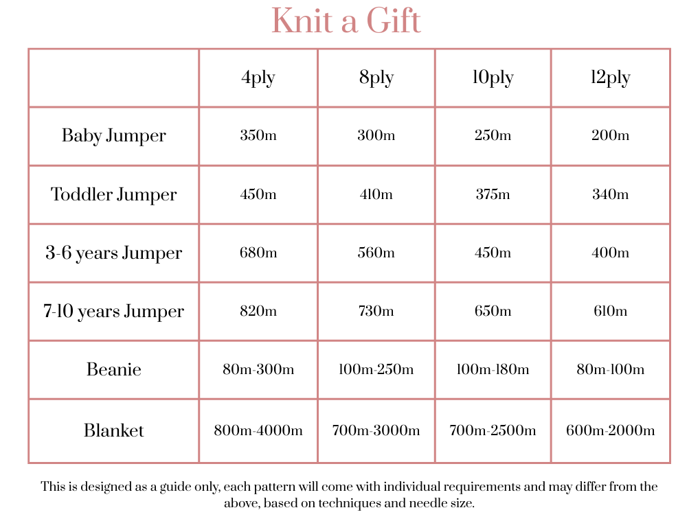 When buying hand-dyed yarns it’s particularly important to get your whole project amount from the same batch. It’s great to have an idea on the type of project you’ll make with the yarn so you can purchase enough in case we discontinue a colourway. If you’re adding to your stash for later, use this guide to help you purchase enough for when you find the perfect pattern!